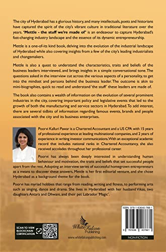 Poorvi has always been deeply interested in understanding human behaviour and motivation, the traits and beliefs that set successful people apart from the rest. Adopting an interview series of successful homegrown entrepreneurs as a means to discover these answers, Mettle is her first editorial venture, and she chose Hyderabad as a background theme for the book.